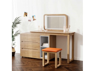 朗朝現代極簡白蠟木家具:L2691#梳妝臺(原木色)、妝凳