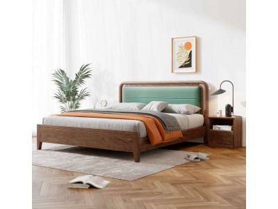 朗朝現代極簡白蠟木家具:L2605#軟包床(胡桃色)、L261#床頭柜