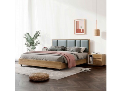 朗朝現代極簡白蠟木家具:L2601#形象床(原木色)、L263#床頭柜