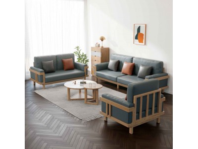 朗朝現代極簡白蠟木家具:L2804#1+2+3沙發(原木色)、L282#大圓幾、L282#小圓幾