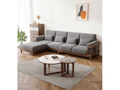朗朝現(xiàn)代極簡(jiǎn)白蠟?zāi)炯揖撸篖2803#轉(zhuǎn)角沙發(fā)(胡桃色)、L282#大圓幾、L282#小圓幾
