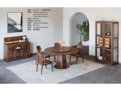 艾美儷家可可西里現(xiàn)代極簡黑金檀木家具:餐桌KK5101#(全圓形造型)、餐椅KK3501#