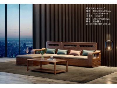 艾美儷家可可西里現代極簡黑金檀木家具:轉角沙發KK3202#、長茶幾KK3302#