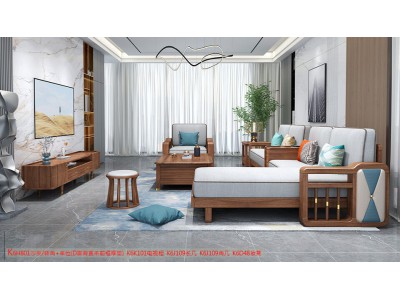 康優寶輕奢新中式胡桃木家具:K6H801沙發 轉角+單位(D靠背直條前框厚墊)