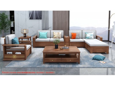 康優寶輕奢新中式胡桃木家具:K6H305沙發 轉角+單位(D靠背儲物箱體薄墊)