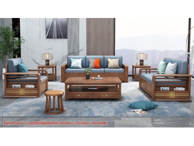 康優寶輕奢新中式胡桃木家具:K6H305沙發 1+2+3位(D靠背儲物箱體薄墊)