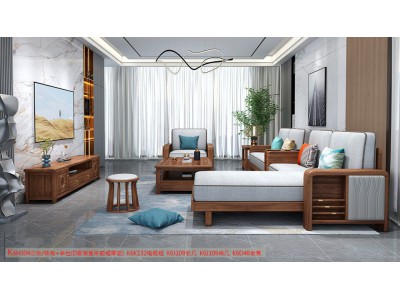 康優寶輕奢新中式胡桃木家具:K6H304沙發 轉角+單位(D靠背直條前框厚墊)