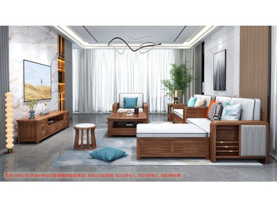 康優寶輕奢新中式胡桃木家具:K6H304沙發 轉角+單位(D靠背儲物箱體薄墊)