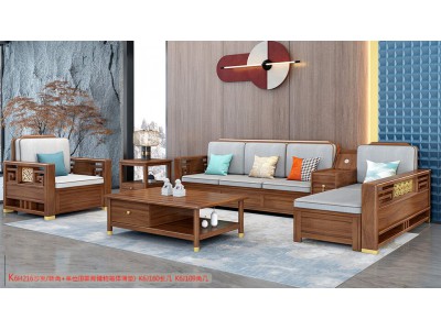 康優(yōu)寶輕奢新中式胡桃木家具:K6H216沙發(fā) 轉角+單位(B靠背儲物箱體薄墊)