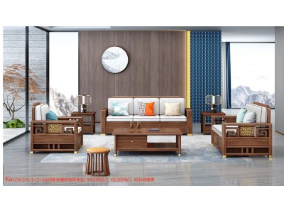 康優寶輕奢新中式胡桃木家具:K6H216沙發 1+2+3位(B靠背儲物箱體薄墊)