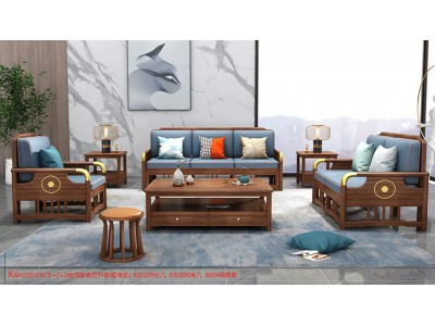 康優(yōu)寶輕奢新中式胡桃木家具:K6H210沙發(fā) 1+2+3位(B靠前欄桿前框薄墊) |