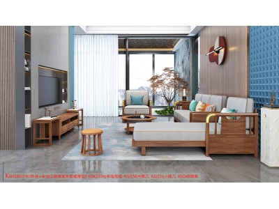 康優寶輕奢新中式胡桃木家具:K6H180沙發 轉角+單位(D靠背直條前框厚墊)