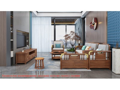 康優寶輕奢新中式胡桃木家具:K6H180沙發 轉角+單位(B靠背儲物箱體薄墊)