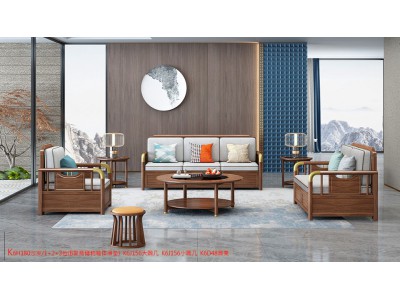 康優寶輕奢新中式胡桃木家具:K6H180沙發 1+2+3位(B靠背儲物箱體薄墊)