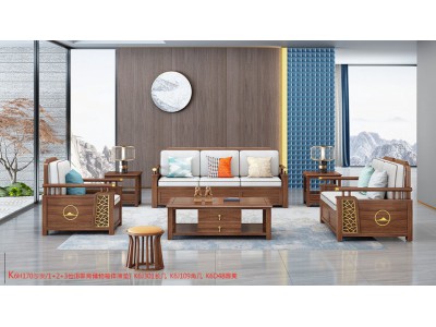 康優寶輕奢新中式胡桃木家具:K6H170沙發 1+2+3位(B靠背儲物箱體薄墊)