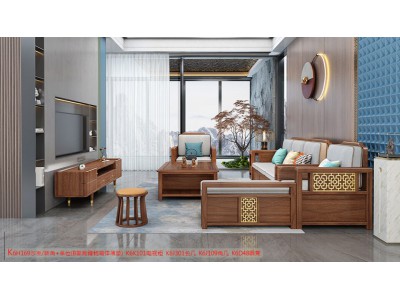 康優寶輕奢新中式胡桃木家具:K6H169沙發 轉角+單位(B靠背儲物箱體薄墊)