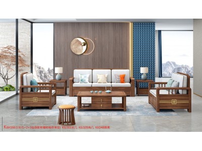 康優寶輕奢新中式胡桃木家具:K6H166沙發 1+2+3位(B靠背儲物箱體薄墊)