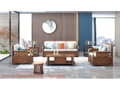 康優寶輕奢新中式胡桃木家具:K6H162沙發 1+2+3位(B靠背儲物箱體薄墊)