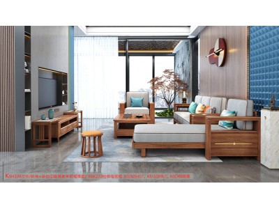 康優寶輕奢新中式胡桃木家具:K6H109沙發 轉角+單位(D靠背直條前框厚墊)