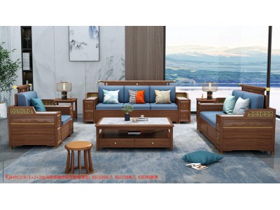 康優寶輕奢新中式胡桃木家具:K6H91沙發 1+2+3位(A靠背儲物箱體前框薄墊)