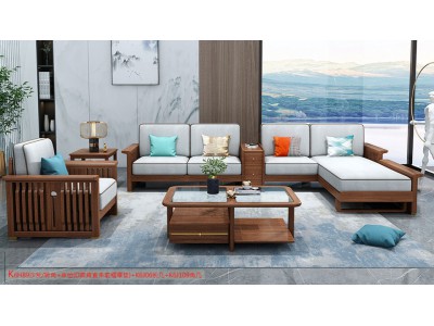 康優(yōu)寶輕奢新中式胡桃木家具:K6H89沙發(fā) 轉(zhuǎn)角+單位(D靠背直條前框厚墊)
