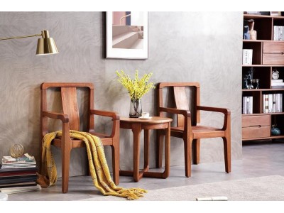 安德穩南美胡桃木木蠟油原木家具:休閑椅603#、休閑圓幾A10#