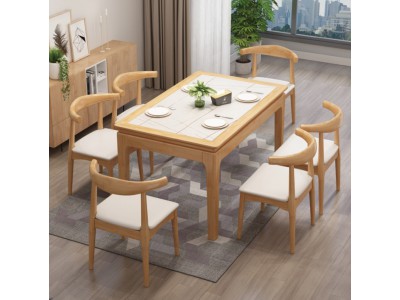 云杉木語云帆北歐系列家具:8056#銅套半島巖板餐桌、8058#無銅套半島巖板餐桌