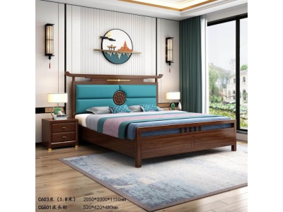 衛府里新中式家具:床C603、床頭柜CG601