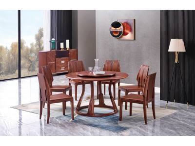華夏國康卡迪婭輕奢極簡黃檀木家具:K501圓桌、K56餐椅、K800餐邊柜