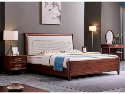 華夏國康卡迪婭輕奢極簡黃檀木家具:K2009B大床(軟包)