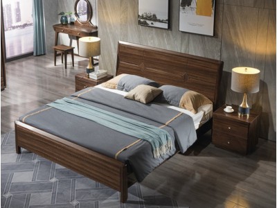 木來客現代輕奢極簡黑胡桃木家具:8A18#床