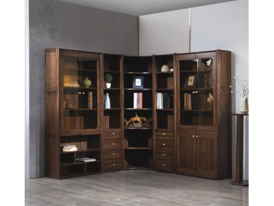 木來客現代輕奢極簡黑胡桃木家具:8F01#單門書柜、8F02#兩門書柜、8F03#雙門書柜、8F05#書柜轉角