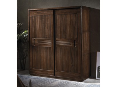 木來客現代輕奢極簡黑胡桃木家具:8D03#趟門衣柜