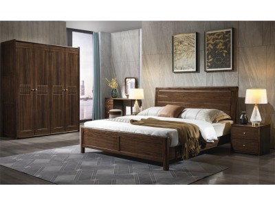 木來客現(xiàn)代輕奢極簡(jiǎn)黑胡桃木家具:8A12#床