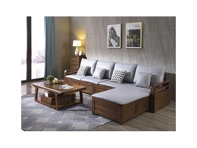 木來客現代輕奢極簡黑胡桃木家具:8W26#轉角沙發