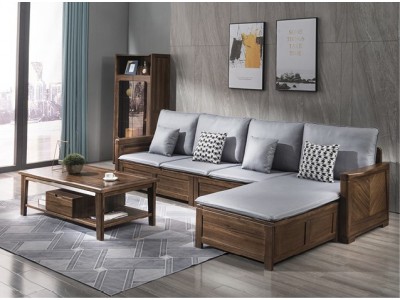 木來客現代輕奢極簡黑胡桃木家具:8W38#轉角沙發