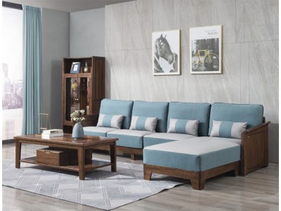 木來客現代輕奢極簡黑胡桃木家具:8W59#轉角沙發