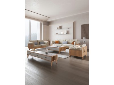 匠者白蠟?zāi)鞠盗屑揖撸篔D-616沙發(fā)原木色1+2+3