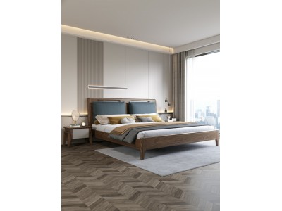 匠者白蠟木系列家具:JD-601床軟包款胡桃色