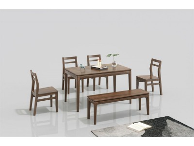 天倫雅樂現代極簡南美黑胡桃木家具:CT101餐臺、CY101餐椅、CD108長凳