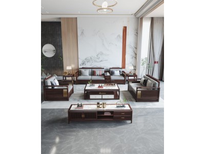 阿姆雷特新中式金絲檀木HT89沙發加茶水柜