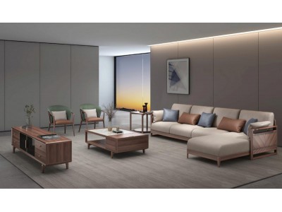 木來客現代輕奢極簡黑胡桃木家具:2W17轉角沙發2+3+貴