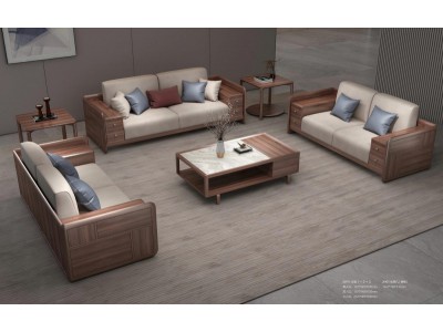 木來客現代輕奢極簡黑胡桃木家具:2W11沙發1+2+3
