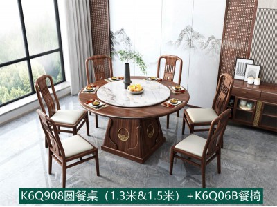 康優(yōu)寶輕奢新中式胡桃木家具:K6Q908圓餐桌(1.3米&1.5米)+K6Q06B餐椅 |