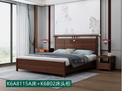 康優寶輕奢新中式胡桃木家具:K6A8115A床+K6B02床頭柜