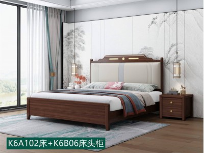 康優寶輕奢新中式胡桃木家具:K6A102床+K6B06床頭柜