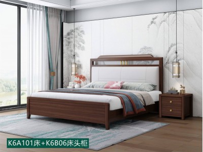 康優寶輕奢新中式胡桃木家具:K6A101床+K6B06床頭柜