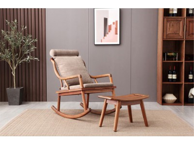 安德穩南美胡桃木木蠟油原木家具:搖椅1018#、腳踏椅1018#