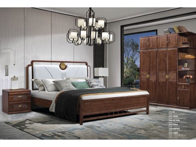 華軒新中式烏金木床355#、床頭柜266#、四門衣柜348#、轉角柜349#、頂轉角柜349#、頂箱柜349#