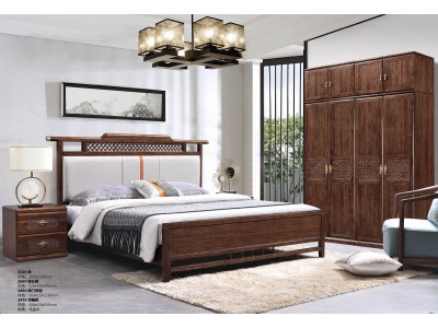華軒新中式烏金木床351#、床頭柜266#、四門衣柜348#、頂箱柜347#